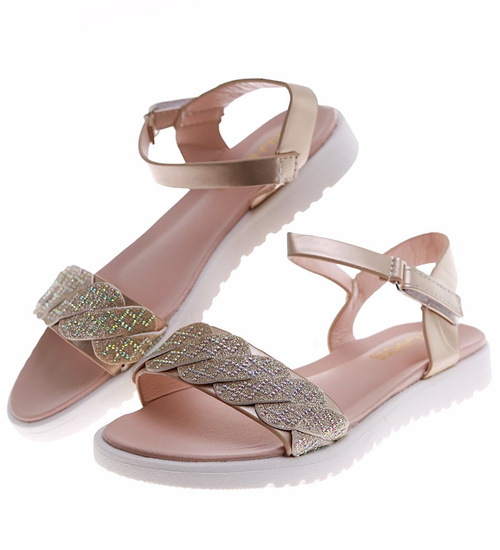 - Przewiewne dziewczęce sandały wykonane z miękkiego materiału skóropodobnego.