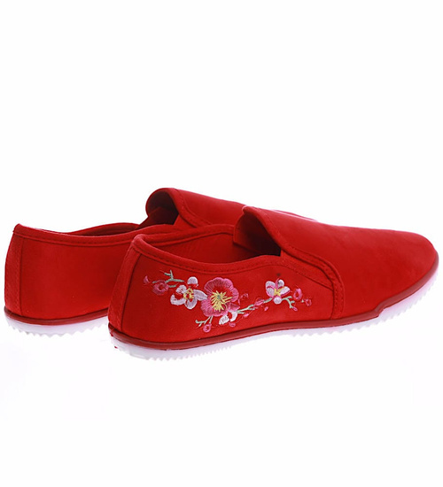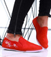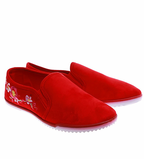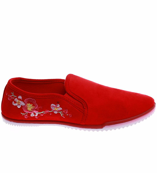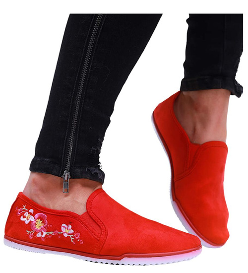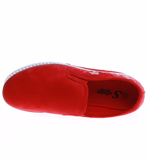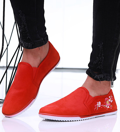 Czerwone tenisówki z kwiatowym haftem /A5-3 16452 T145/