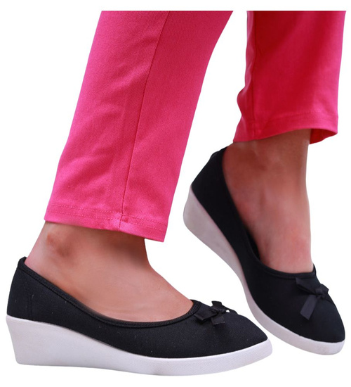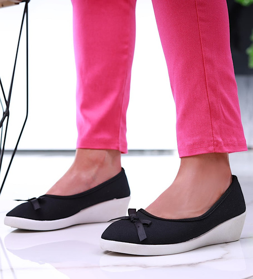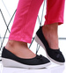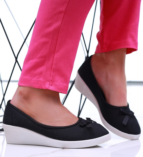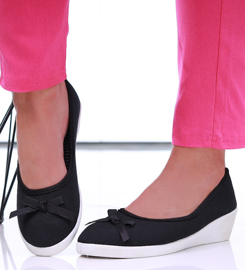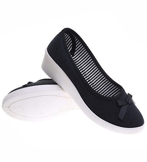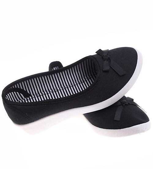- Wkładane tenisówki damskie wykonane z delikatnej tkaniny w czarnym kolorze.