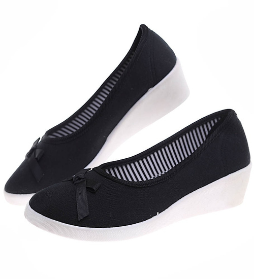 Czarne wsuwane tenisówki na niskim koturnie /F2-1 16478 T155/