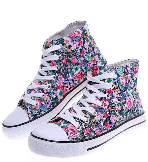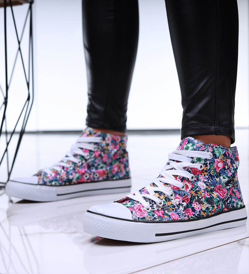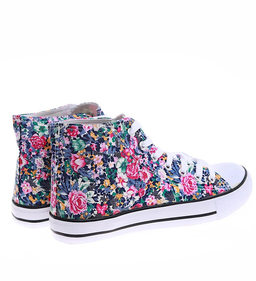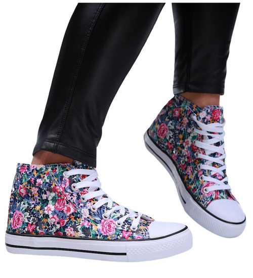 Wysokie damskie trampki w kwiaty /D8-1 16483 G059/