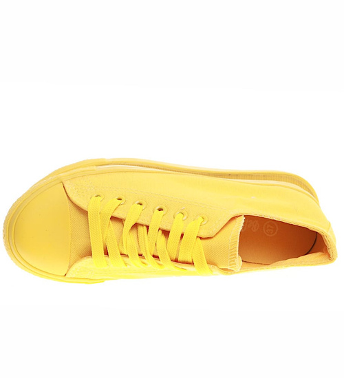Sznurowane żółte trampki damskie /D8-1 16484 G089/