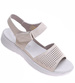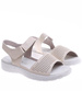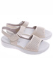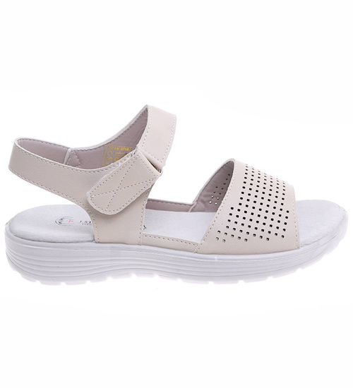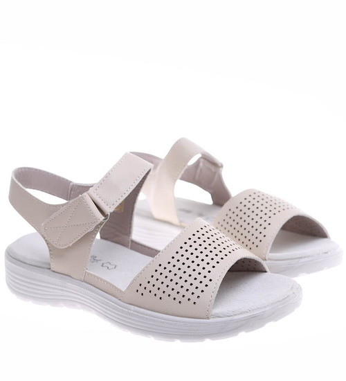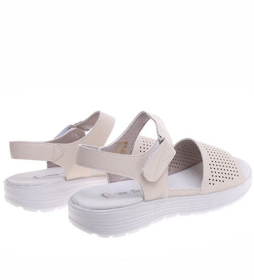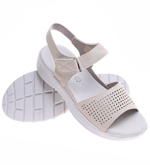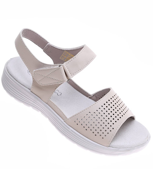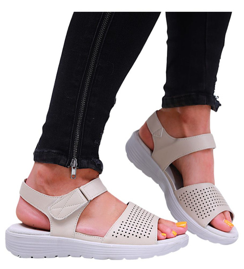 - Casualowe damskie sandały wykonane z miękkiej ekologicznej skórki w beżowym kolorze.