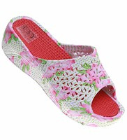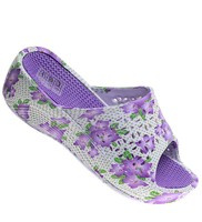- Fioletowe klapki damskie wykonane z miękkiego, piankowo gumowego materiału.