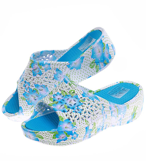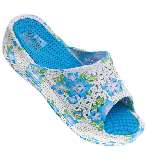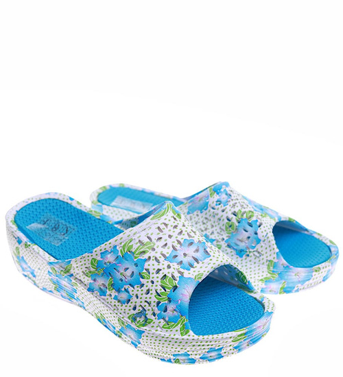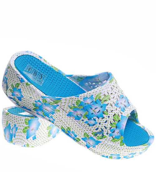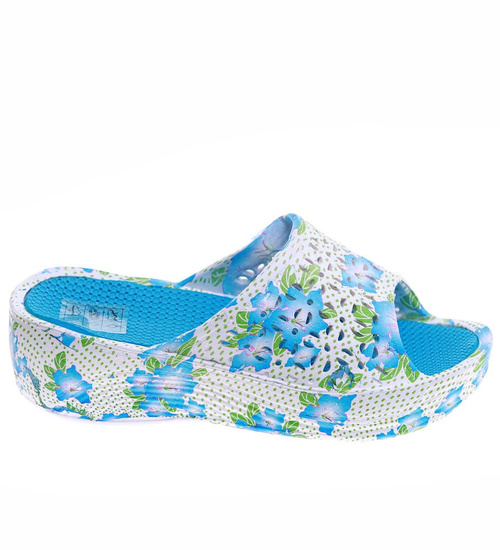 Plażowe niebieskie klapki basenowe na platformie /F7-1 16573 T196/