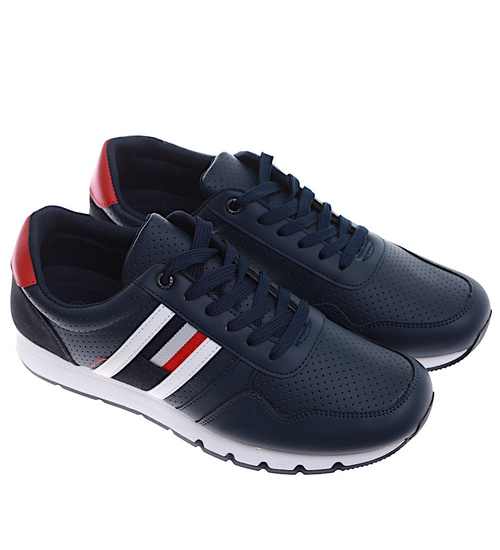 Sznurowane granatowe męskie buty sportowe /E10-1 16535 T458/