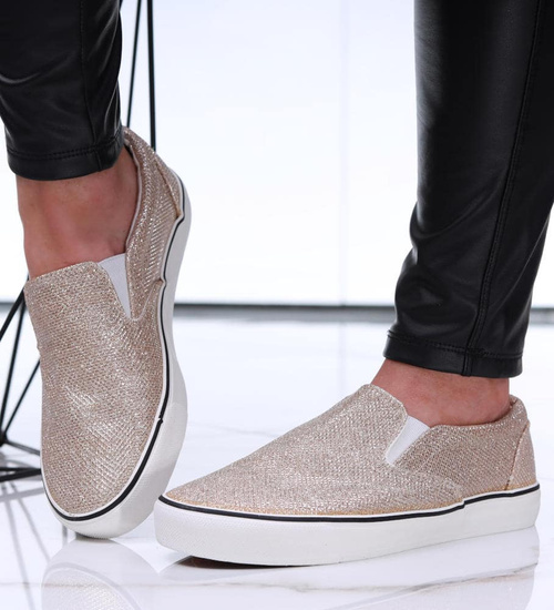 Wsuwane tenisówki damskie slip on Złote /A1-1 16603 G8-6/