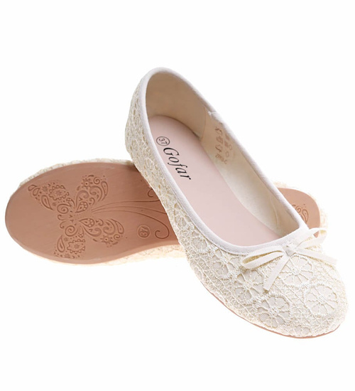 Beżowe koronkowe baleriny /G11-2 16608 T8-61/