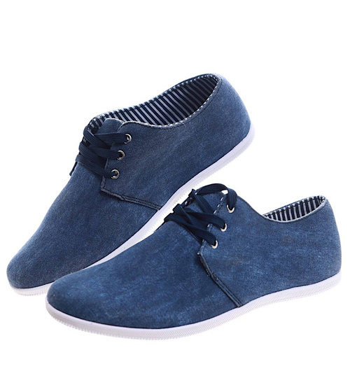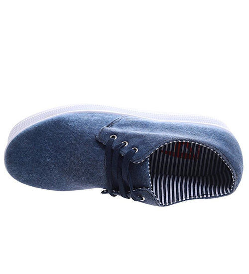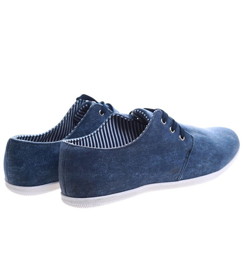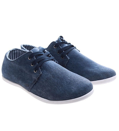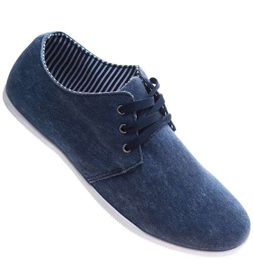 - Komfortowe trampki męskie z wiązaniami wykonane z tekstylnego materiału w kolorze granatowym .