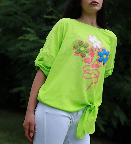 Zielona oversizowa bluzka w kwiaty /H UB753 S198/