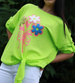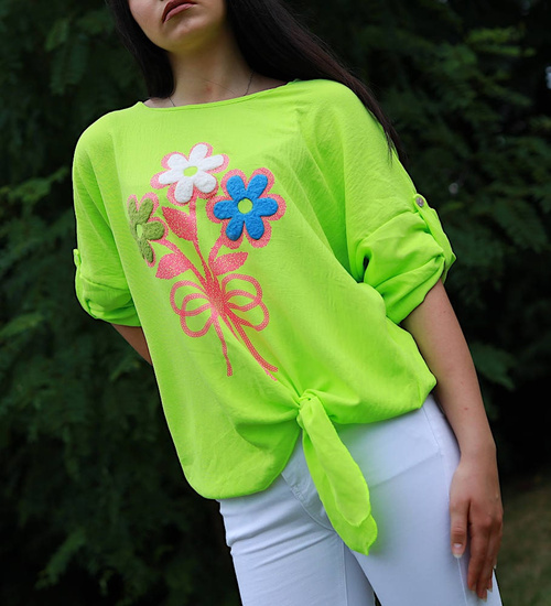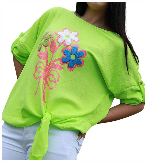 - Dodaj do swojej garderoby zieloną oversizową bluzkę w kwiaty, wykonaną z przewiewnego materiału.