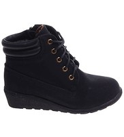 Czarne sznurowane botki na niskim koturnie /C5-2+H2 16626 T7-38/