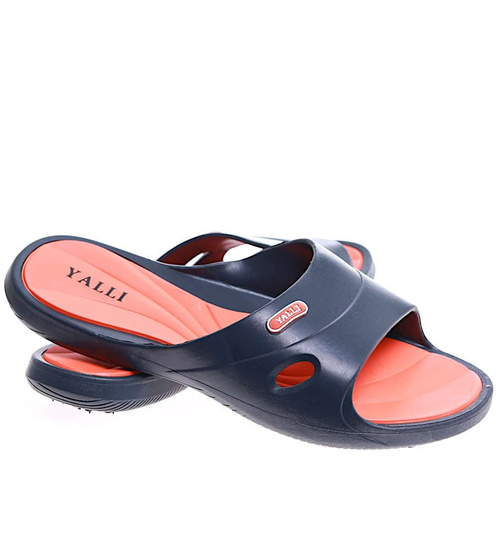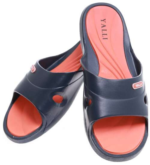 Granatowo pomarańczowe plażowe klapki damskie /G8-1 16637 S184/