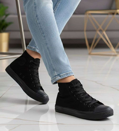 Klasyczne czarne trampki damskie z wysoką cholewką /H2 16707 G9-84/