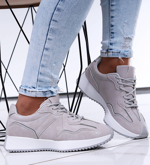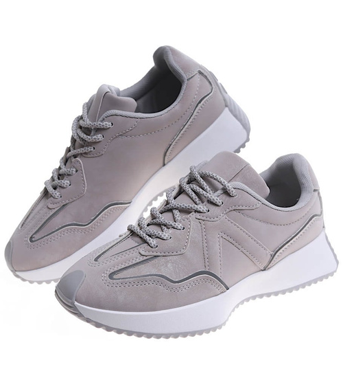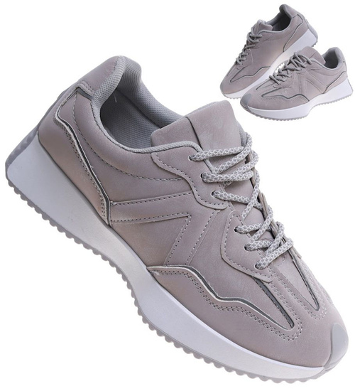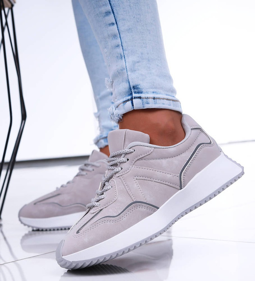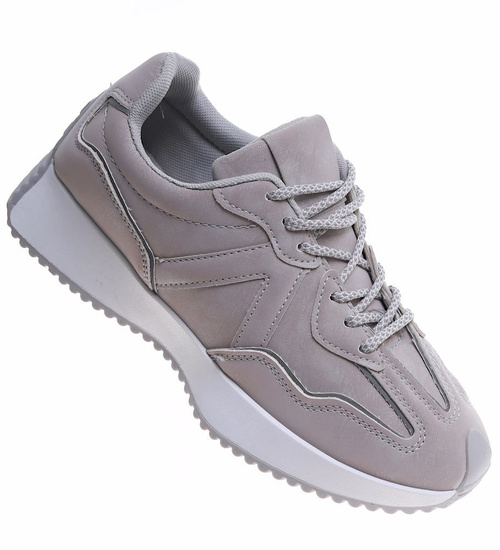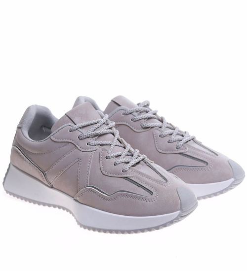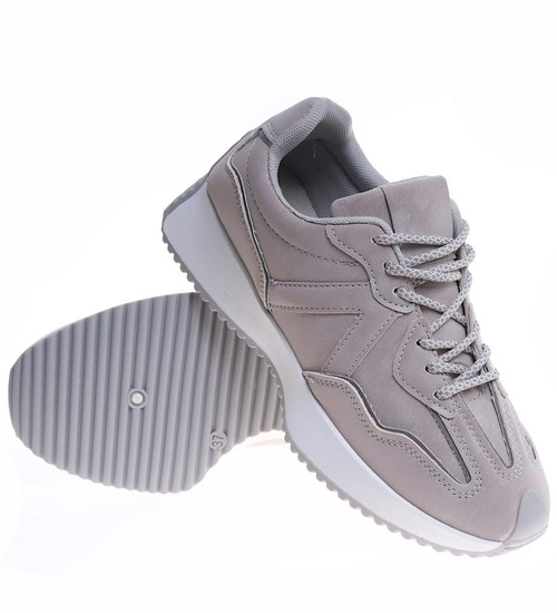 Sznurowane szare buty sportowe damskie /D5-3 16672 T230/