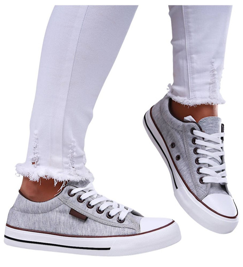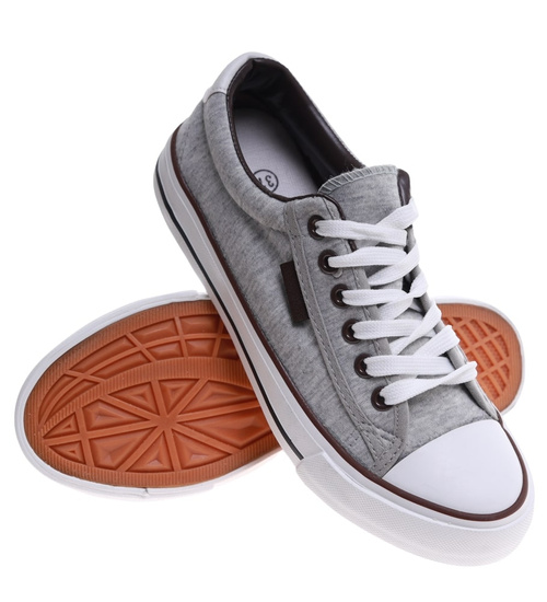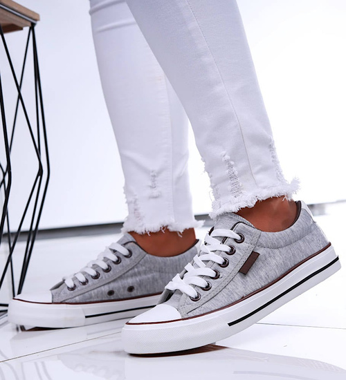 Szare klasyczne sznurowane trampki damskie /F10-2 16676 T187/