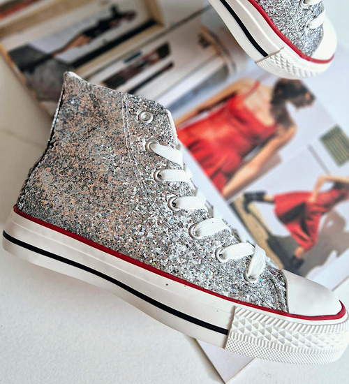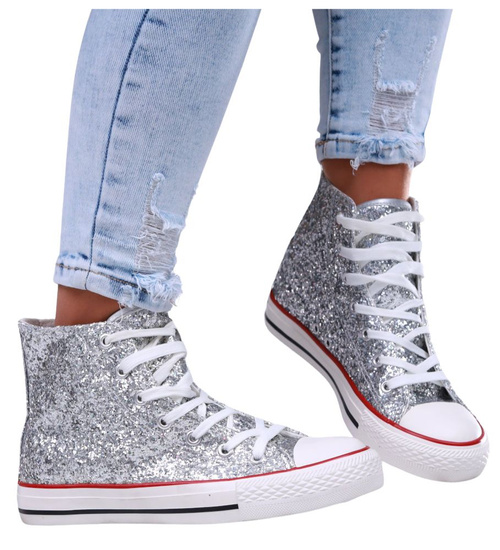 Wysokie srebrne trampki damskie /F9-1 16716 G9-84/