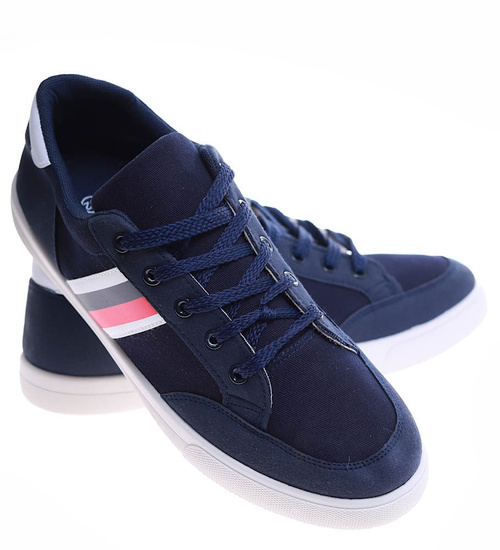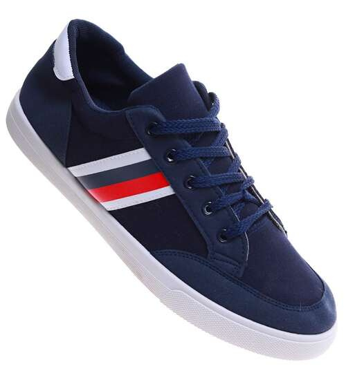 Granatowe sznurowane trampki męskie /C2-2 16686 T236/