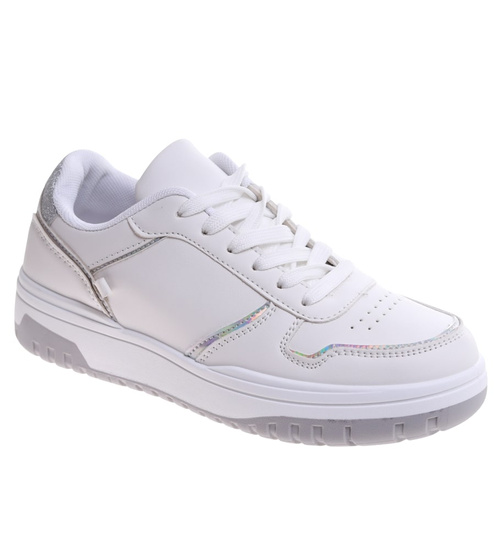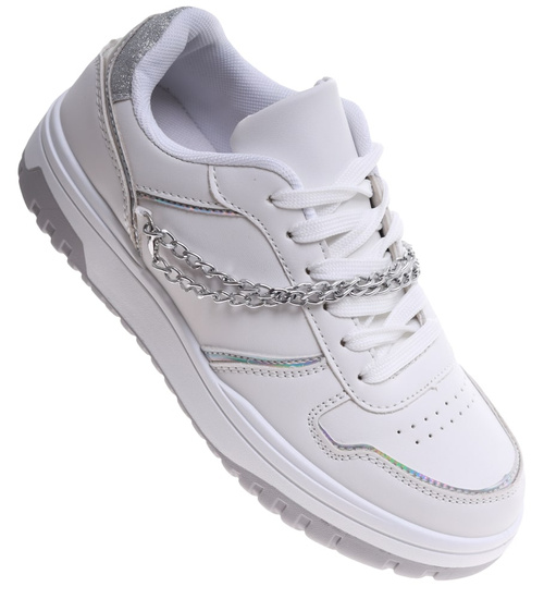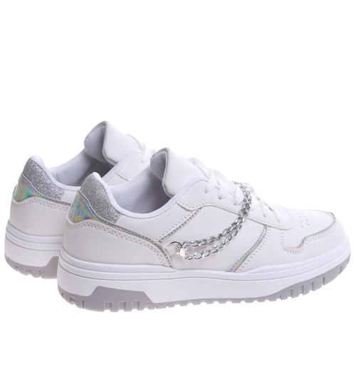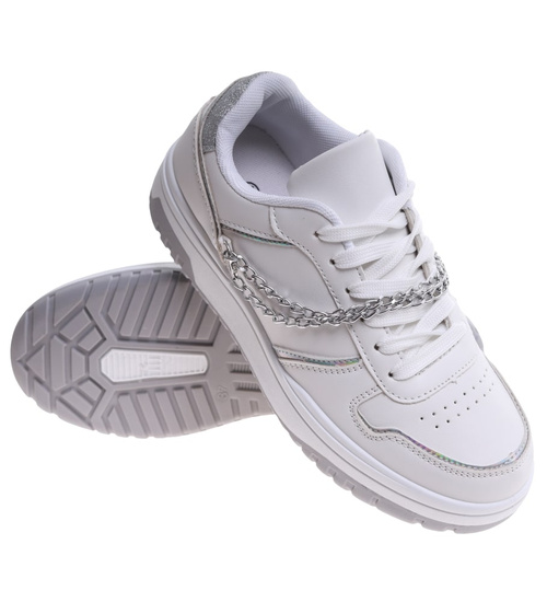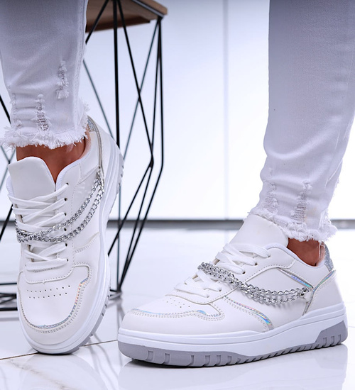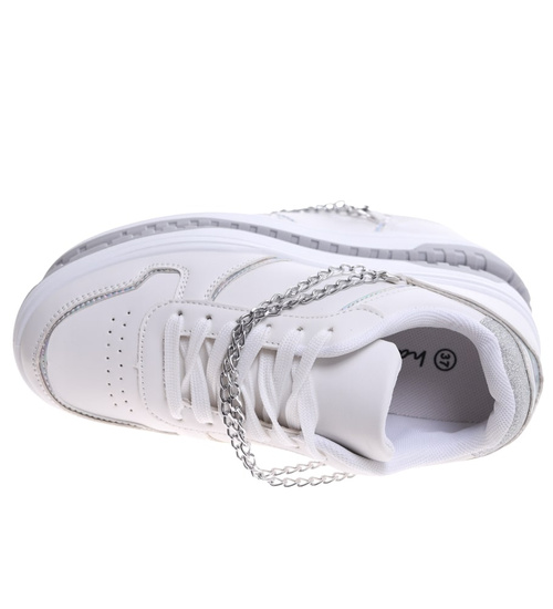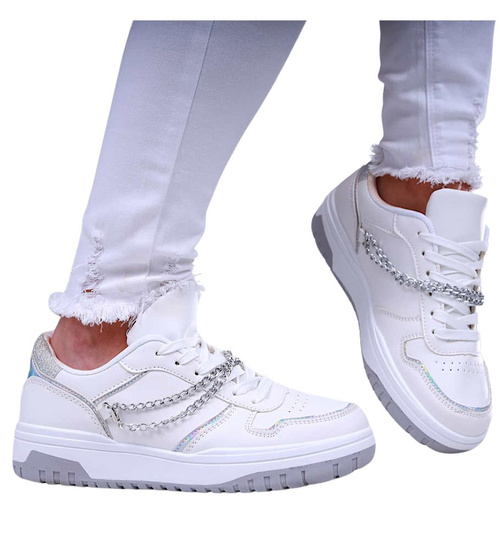 Białe damskie buty sportowe z łańcuszkiem /D6-2 16644 T240/