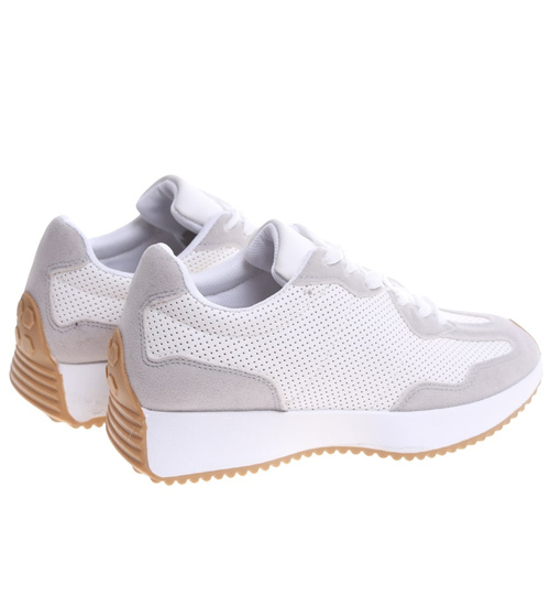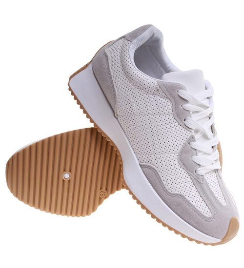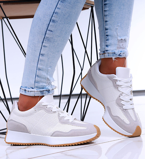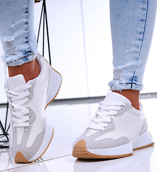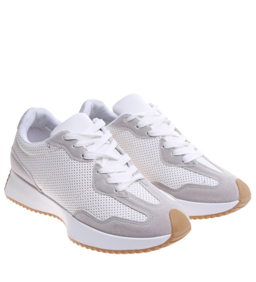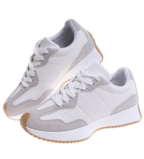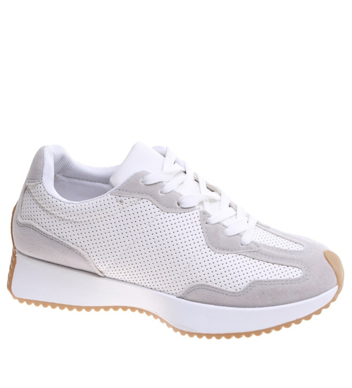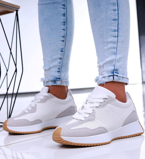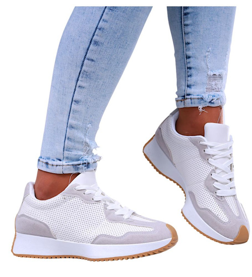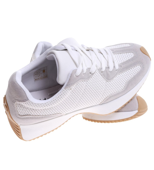 Sznurowane białe ażurowe buty sportowe damskie /G8-3 16664 T240/