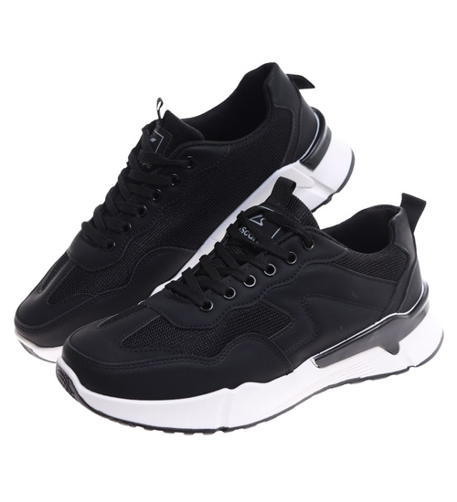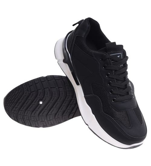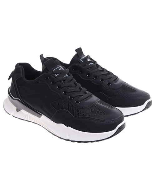 Sznurowane czarne męskie buty sportowe /C1-3 16648 T388/