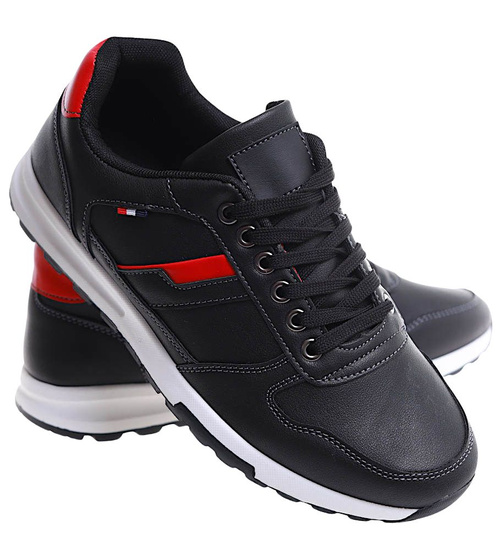 - Czarne męskie buty sportowe z materiału skóropodobnego to połączenie funkcjonalności i wygody.