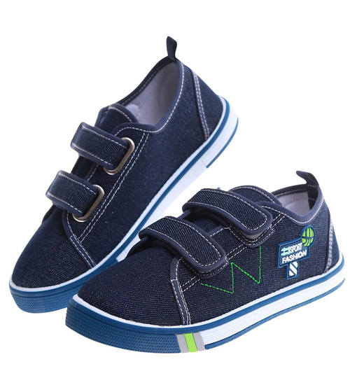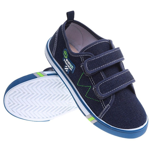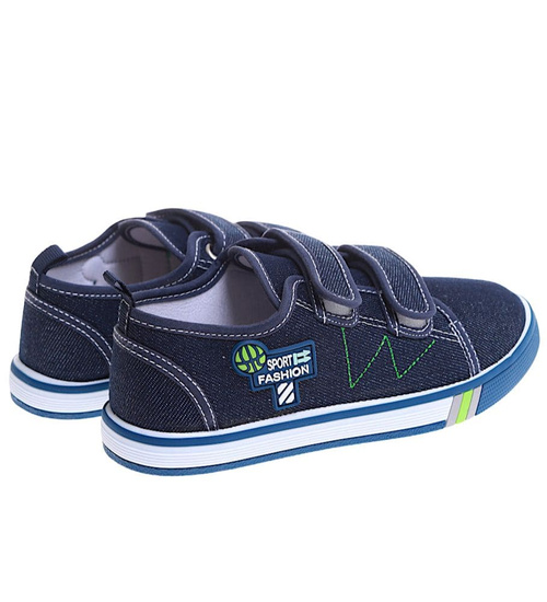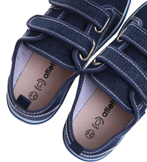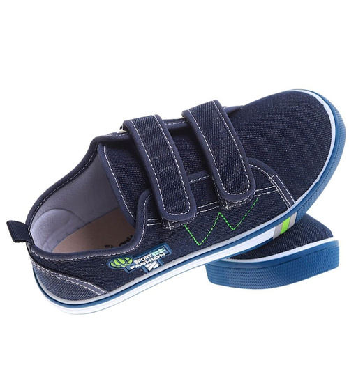 Chłopięce granatowe tenisówki na rzepy ze skórzaną wkładką /G8-2 16816 T238/