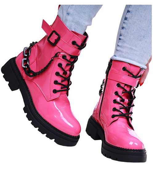 Różowe damskie botki trapery /G10-3 16803 T240/
