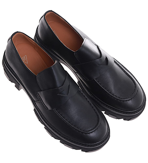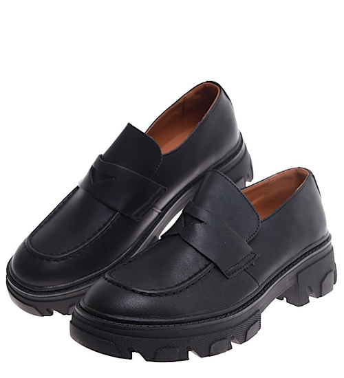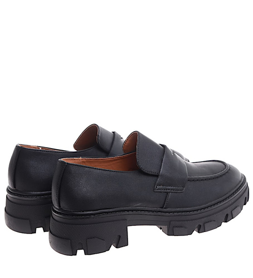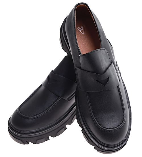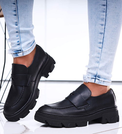 - Czarne damskie loafersy, które łączą klasykę z nowoczesnym akcentem.