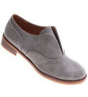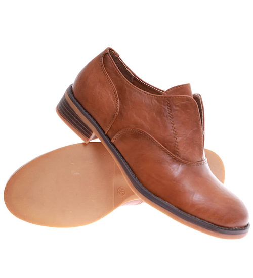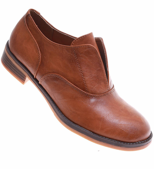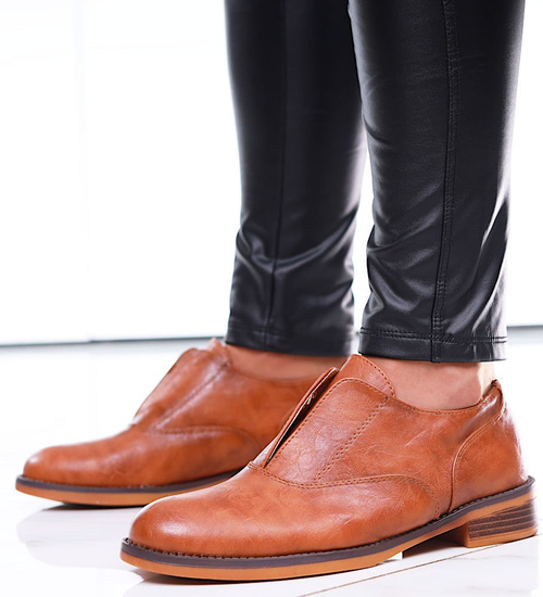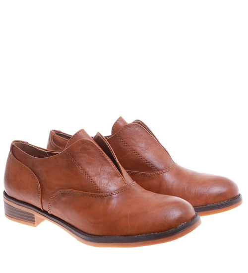 Wsuwane półbuty wykonane z miękkiego, skóropodobnego materiału w brązowym kolorze.