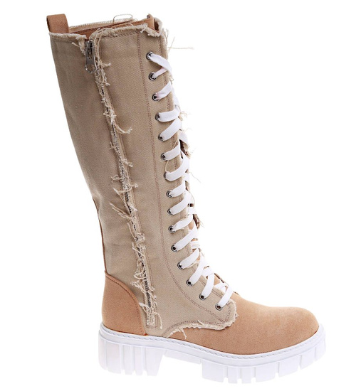 Wysokie beżowe glany trapery na platformie /G8-3 16837 G481/