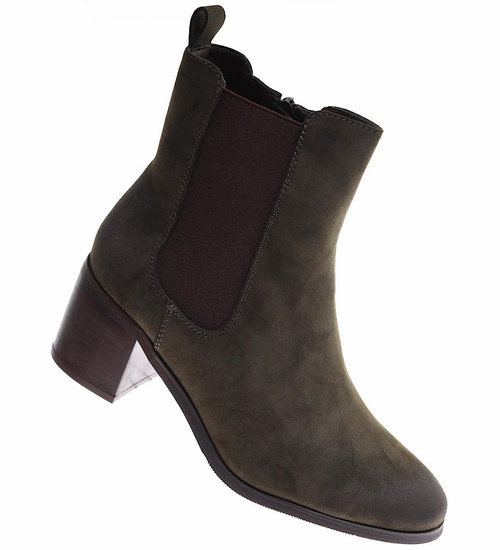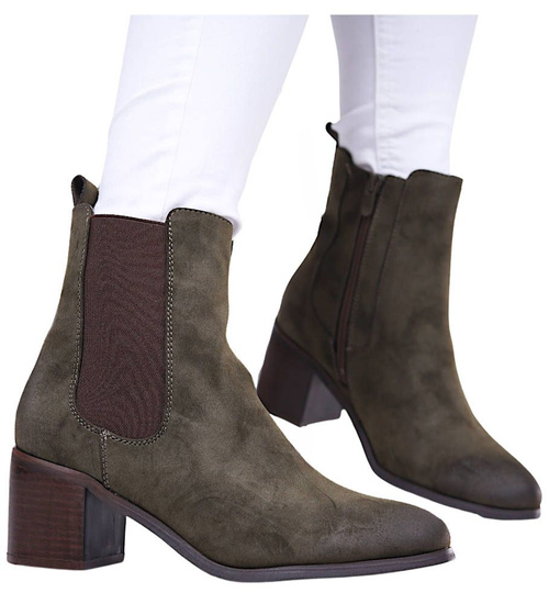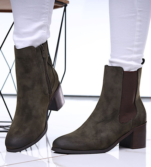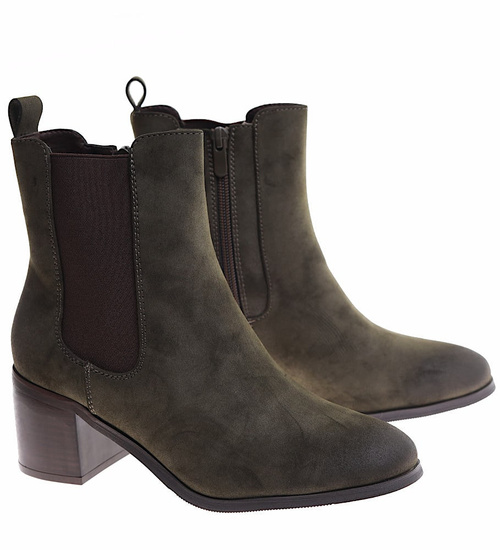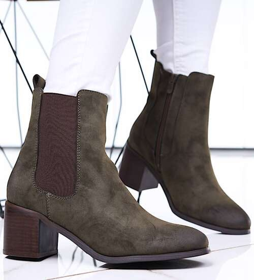 Klasyczne zielone botki damskie na obcasie /E10-1 16822 G387/