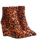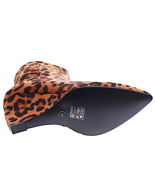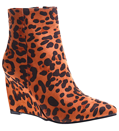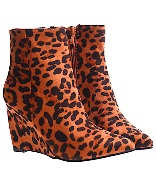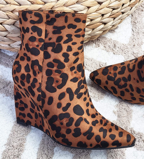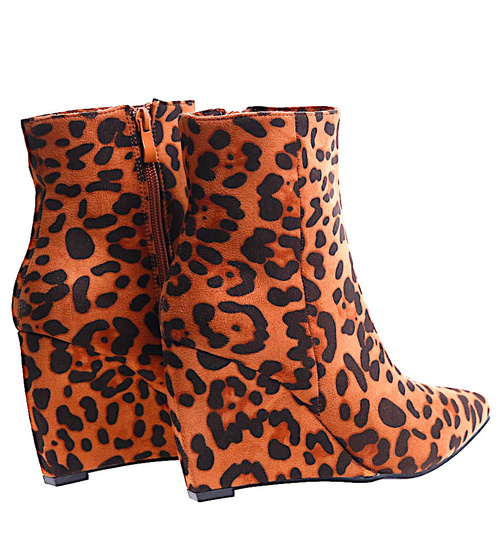 Brązowe ocieplane botki na koturnie leopard /C5-3 15336 T230/