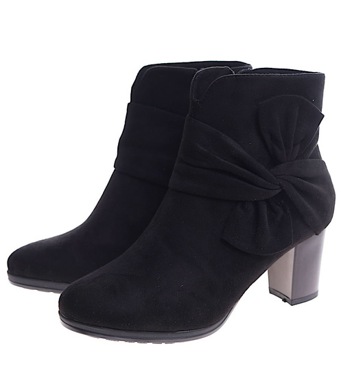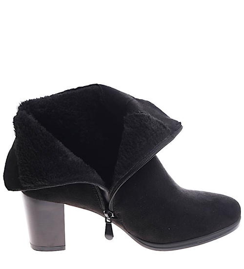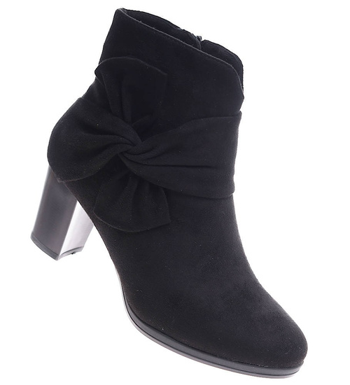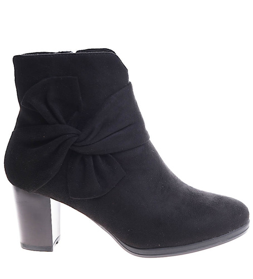 Czarne botki damskie na słupku /A7-1 16901 T227/