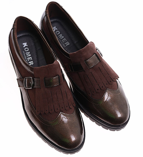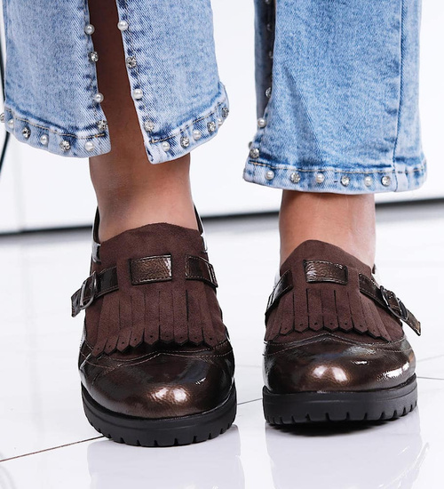 Wsuwane półbuty w styu boho Khaki/A9-2 12591 T213/