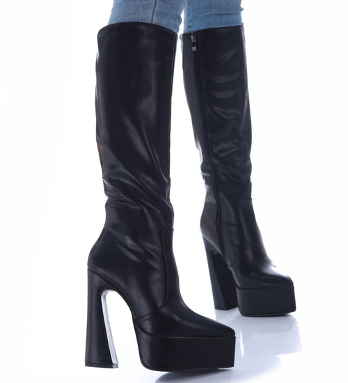 Czarne kozaki damskie na platformie /E6-3 16915 G382/