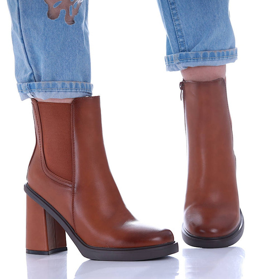Brązowe botki damskie na słupku /A5-3 16920 G387/