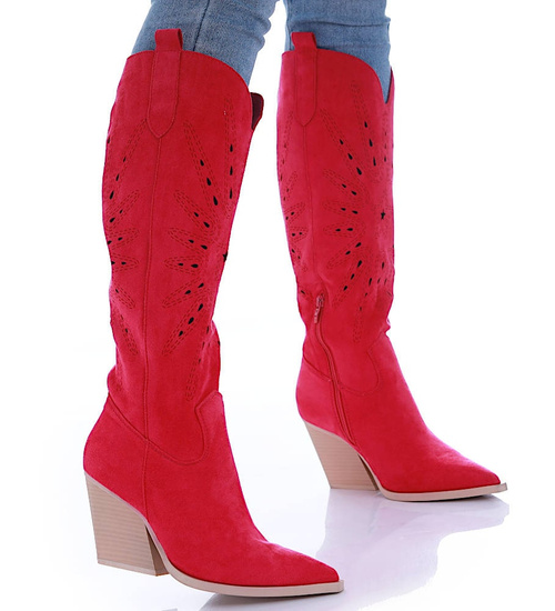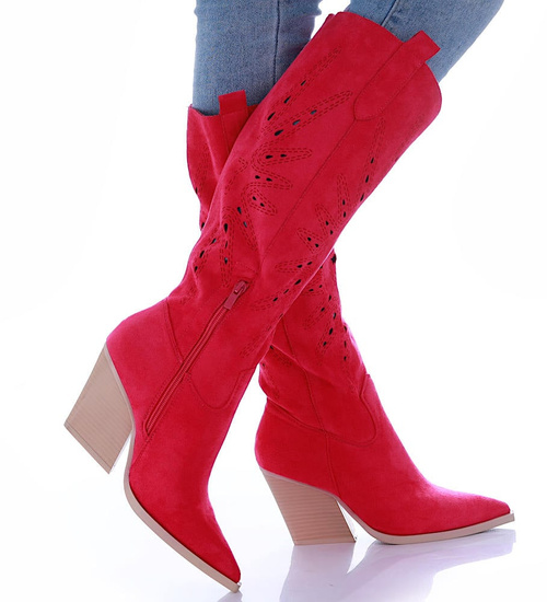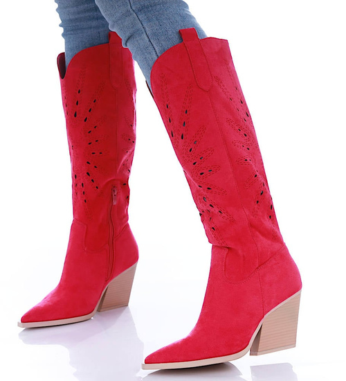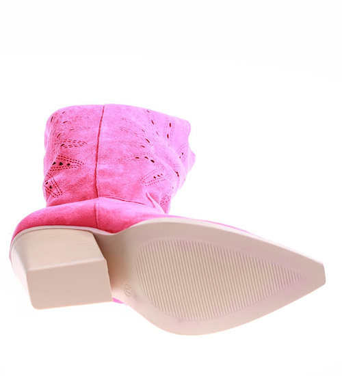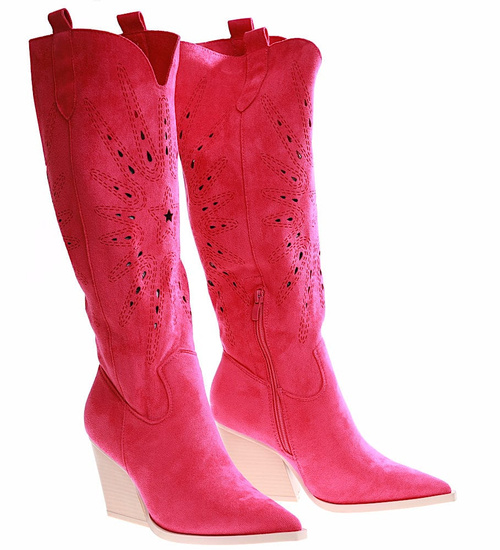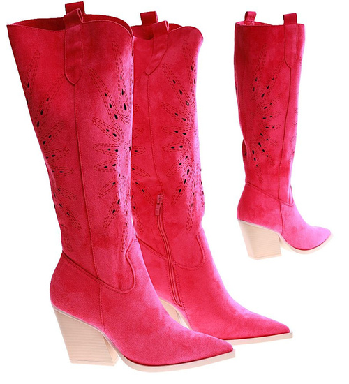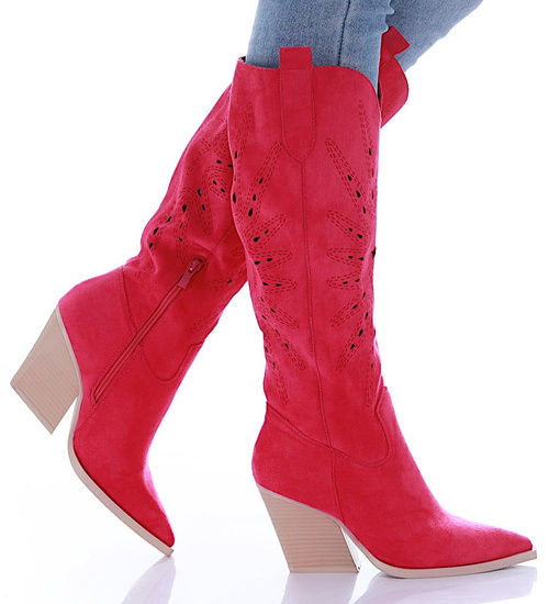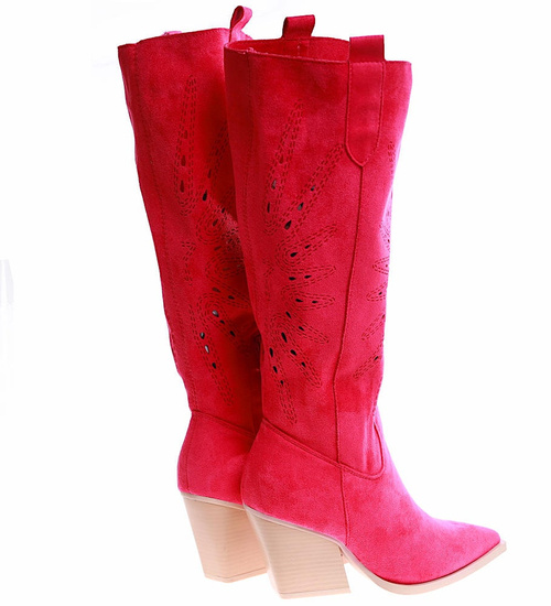 Ażurowe fuksjowe kozaki kowbojki /D3-2 16934 T495/