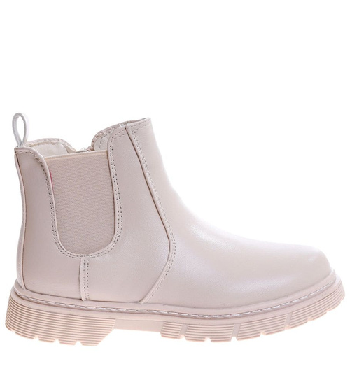 Beżowe dziewczęce ocieplane botki