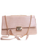 - Damska torebka w kolorze beżowym wykonana z materiału skóropodobnego.