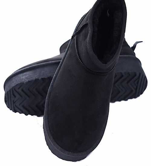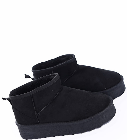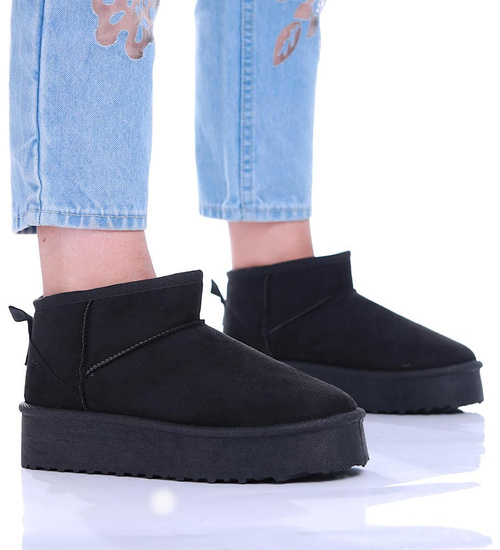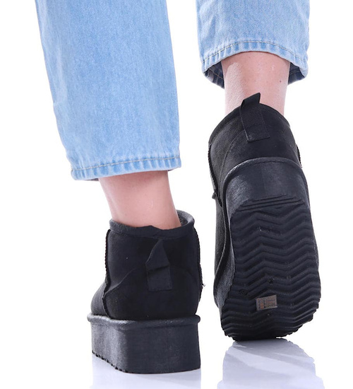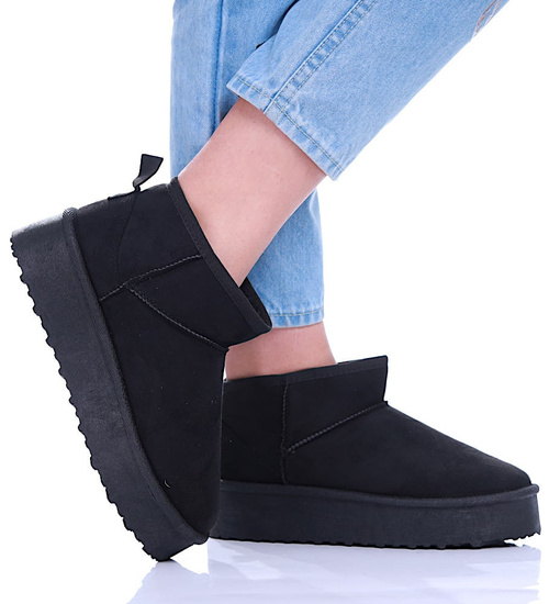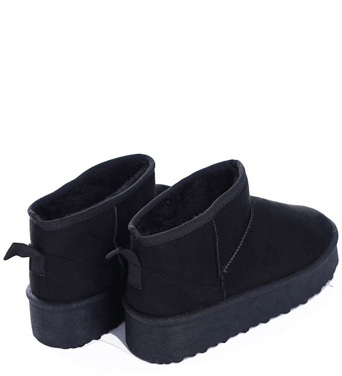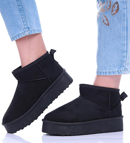 - Kozaki śniegowce damskie wykonane z zamszu w czarnym kolorze.