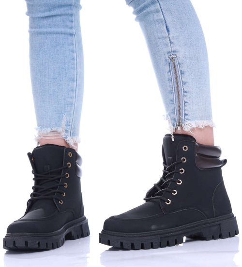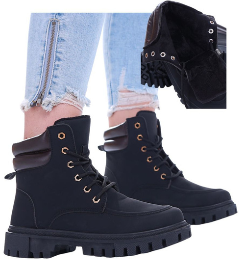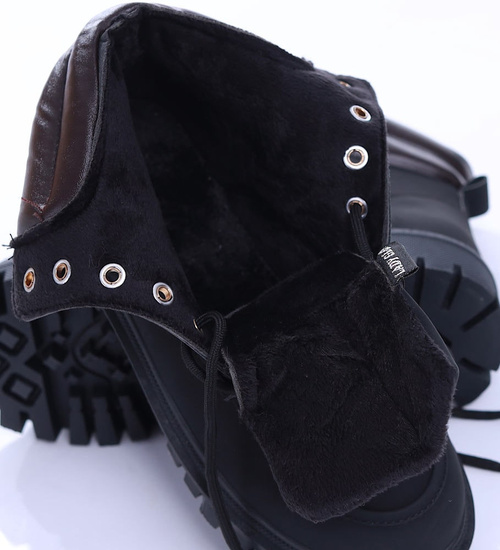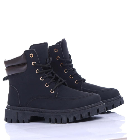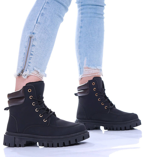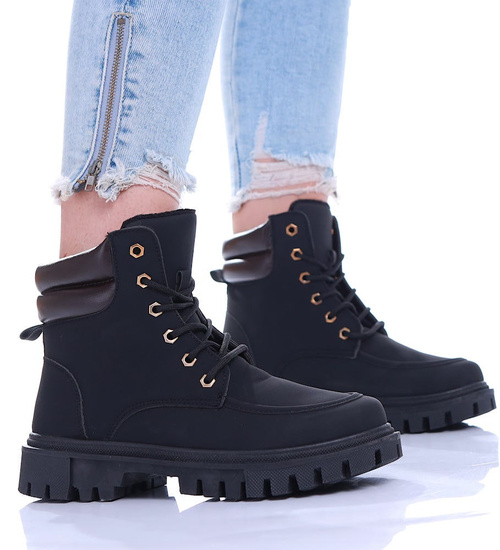 Czarne sznurowane trapery z ociepleniem /B1-2 17066 T380/