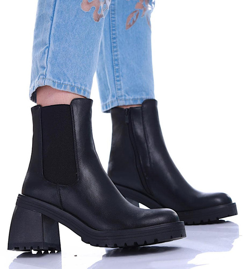 Czarne botki damskie na grubym słupku /G12-1 17050 G324/