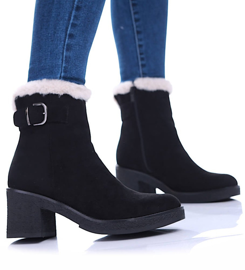 Czarne botki damskie na obcasie z futerkiem /C5-1 17053 G324/