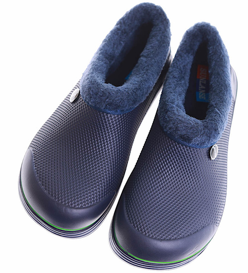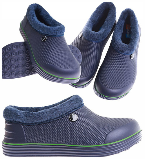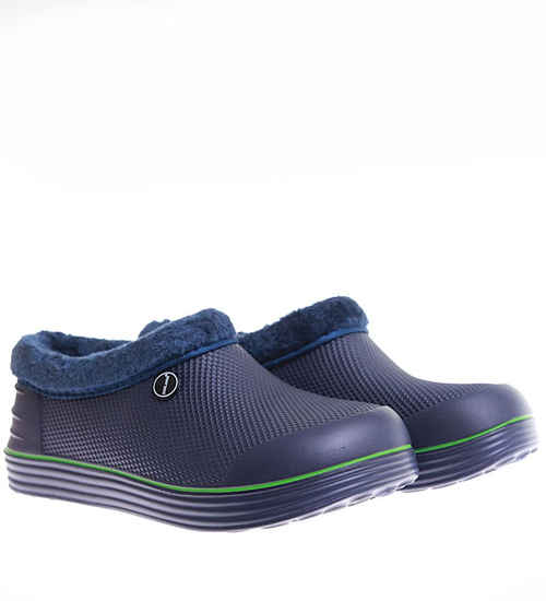 - Mega lekkie piankowe kalosze ocieplone futerkiem w granatowym kolorze.