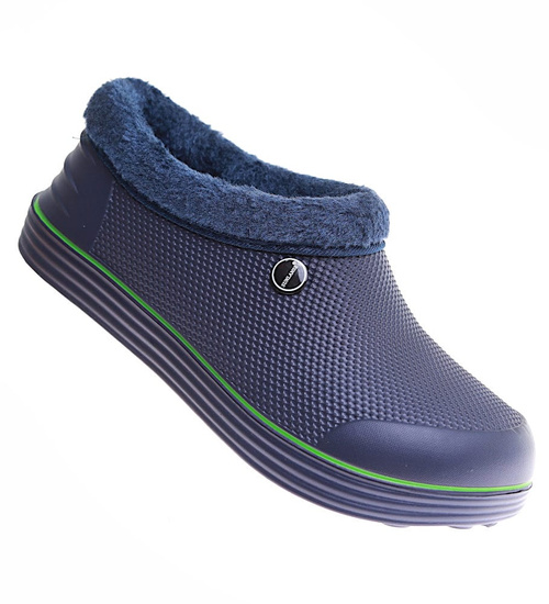 - Lekkie piankowe męskie kalosze ocieplone futerkiem w granatowym kolorze.