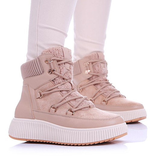- Designerskie śniegowce w praktycznym wydaniu wykonane z zamszu w kolorze khaki.