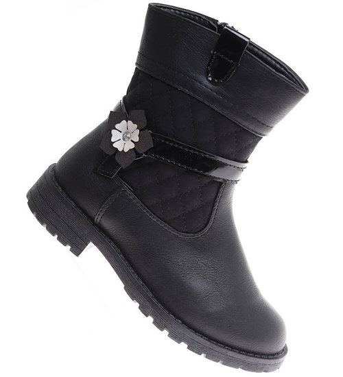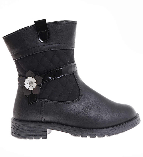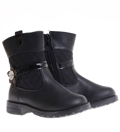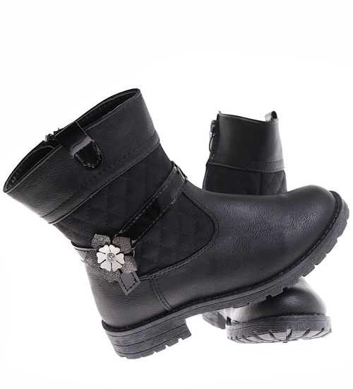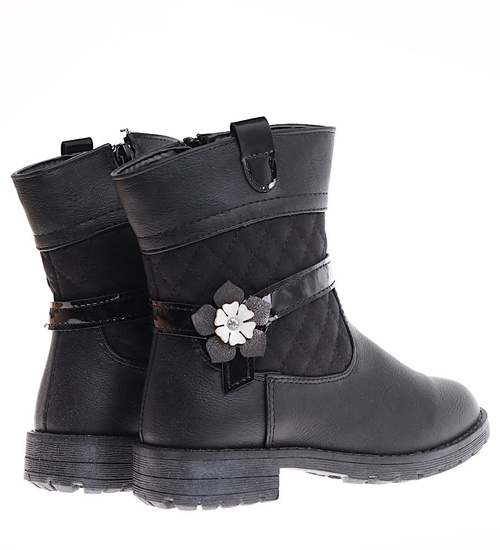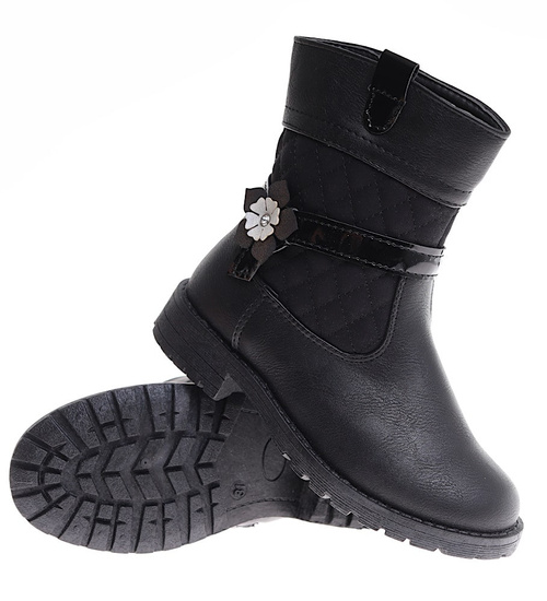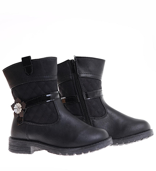- Dziewczęce kozaki wykonane z materiału skóropodobnego w kolorze czarnym.