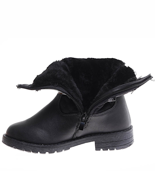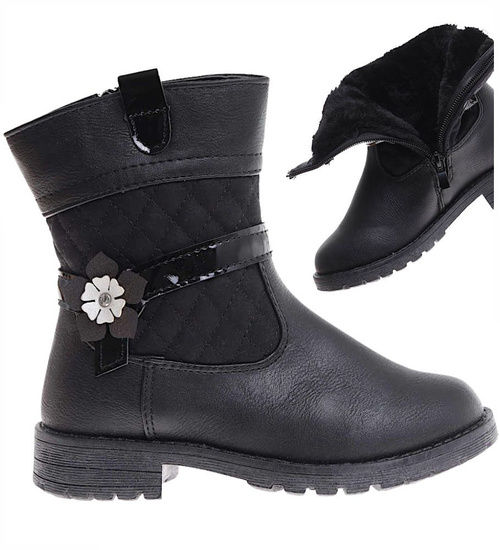 Czarne dziewczęce kozaki z futerkiem /B7-2 17086 T390/