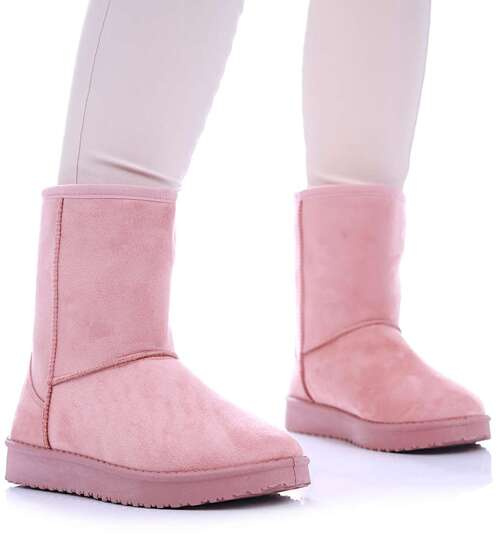 • Klasyczne damskie śniegowce wykonane z zamszowego materiału w ślicznym, różowym kolorze.
